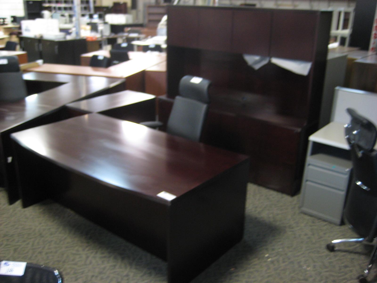 Mahogany Bow Front Executive Desk, Credenza & Hutch