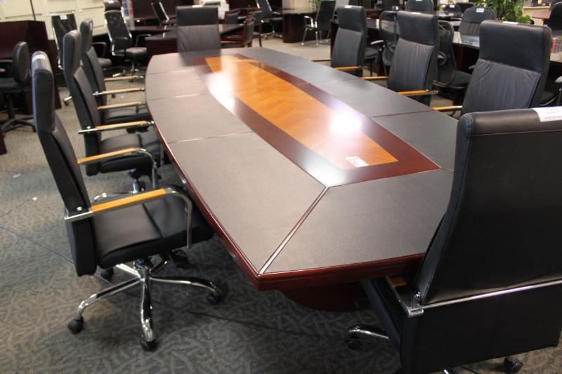 Mahogany/Cherry Leather Inlayed 14Ft Boardroom Table
