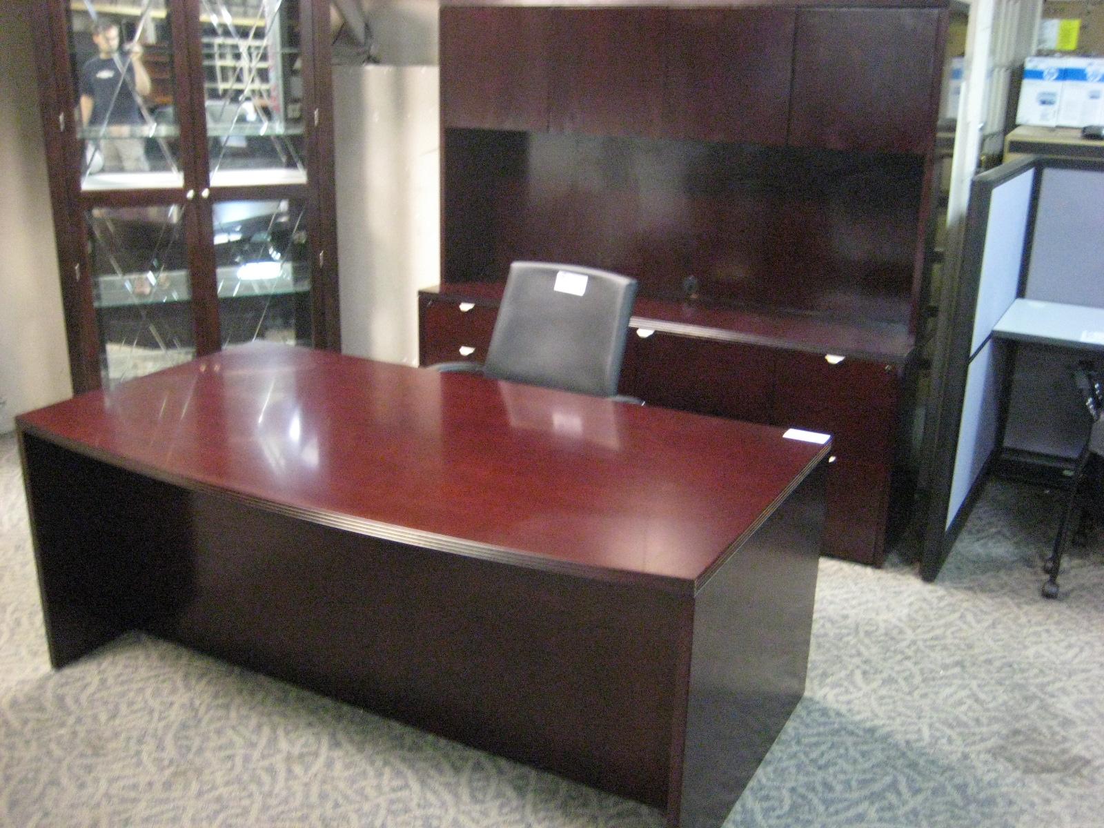 Mahogany Double Pedestal Bow Front Executive Desk W/matching Credenza & Hutch
