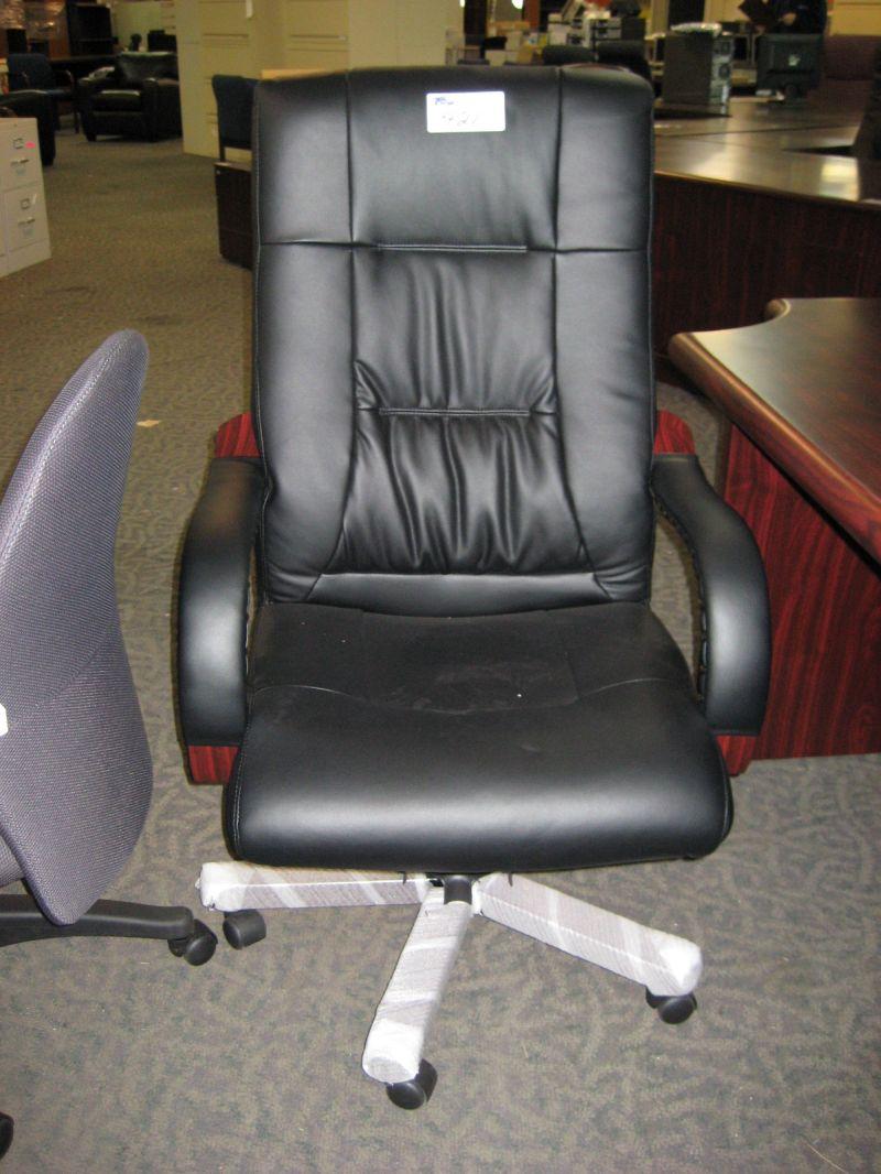 Mahogany Framed Black Leather Hi Back Executive Boardroom Knee Tilter