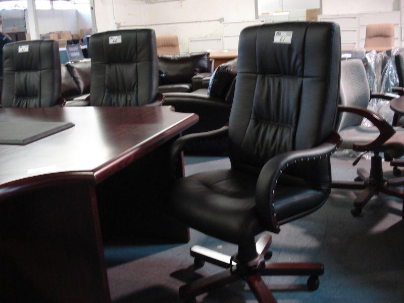 Mahogany Framed Black Leather Highback Tufted Back Gaslift Chair