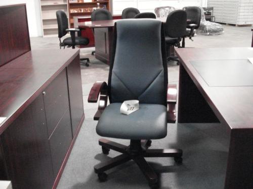 Mahogany Framed Blue Cloth Gaslift Chair