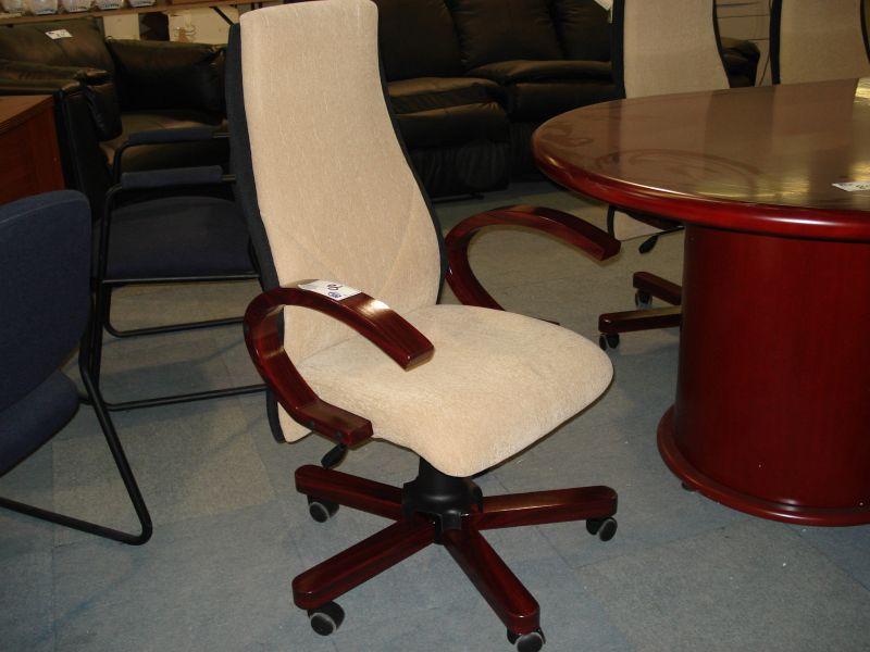Mahogany Framed Cream Cloth Gaslift Chair