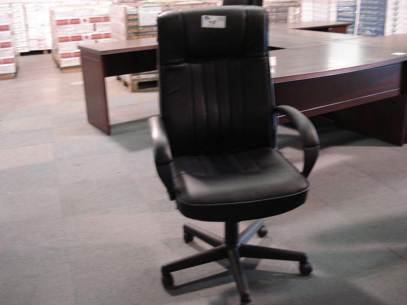 Mahogany Framed Midback Black Leather Gaslift Chair