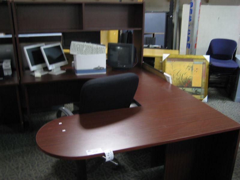 Mahogany L Shape Workstation With Bullet Top And Hutch