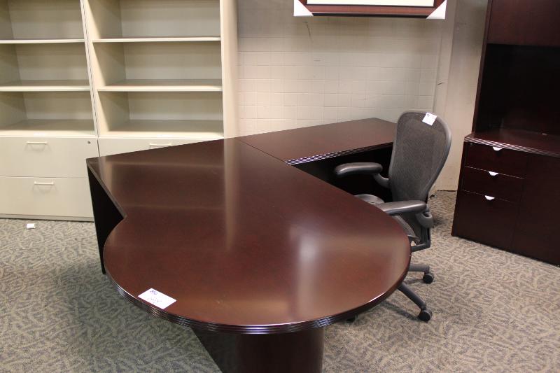 Mahogany P Top Executive L Shape Desk With Right Hand Return