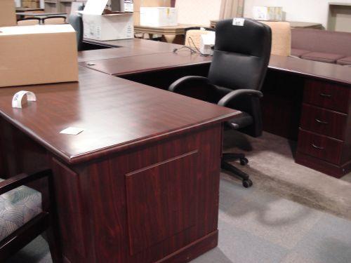 Mahogany Traditional U-Shaped Double Ped Executive Desk
