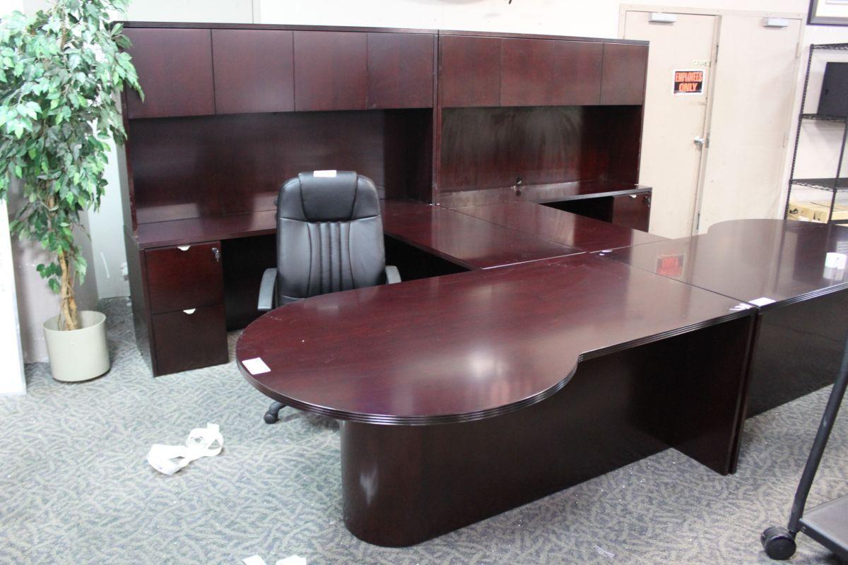 Mahogany U-Shaped Executive Office Suite C/W Hutch