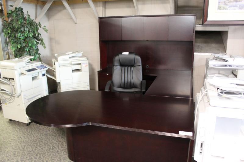 Mahogany U-Shaped P-Top Executive Office Suite