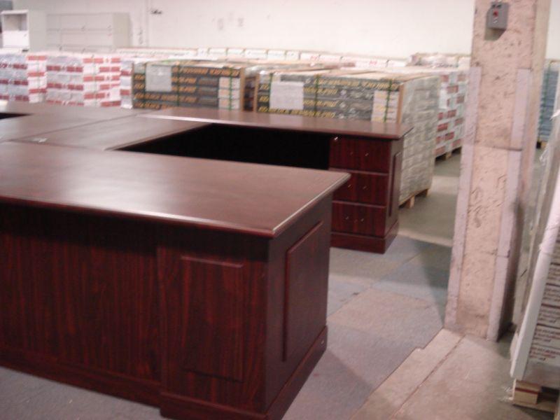 Mahogany U-Shaped Traditional Double Ped Executive Desk P-49
