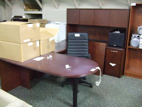 Mahogany U-shape Bullet Top Executive Suite With Hutch