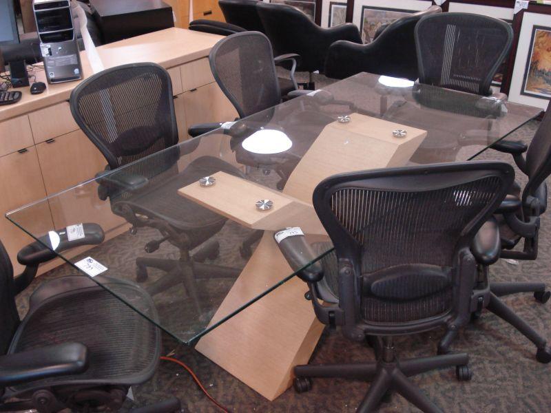 Maple Base, Glass Top Conference Table