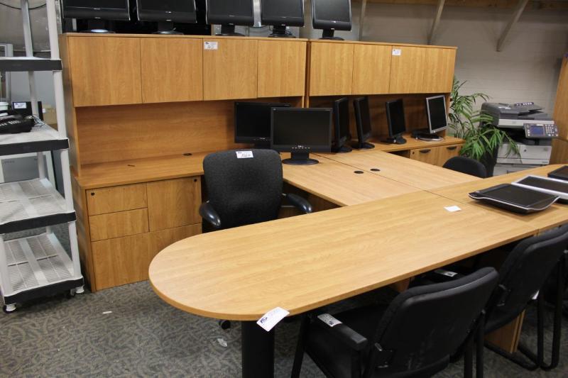 Maple Bullet Top U-Shape Executive Suite W/Hutch