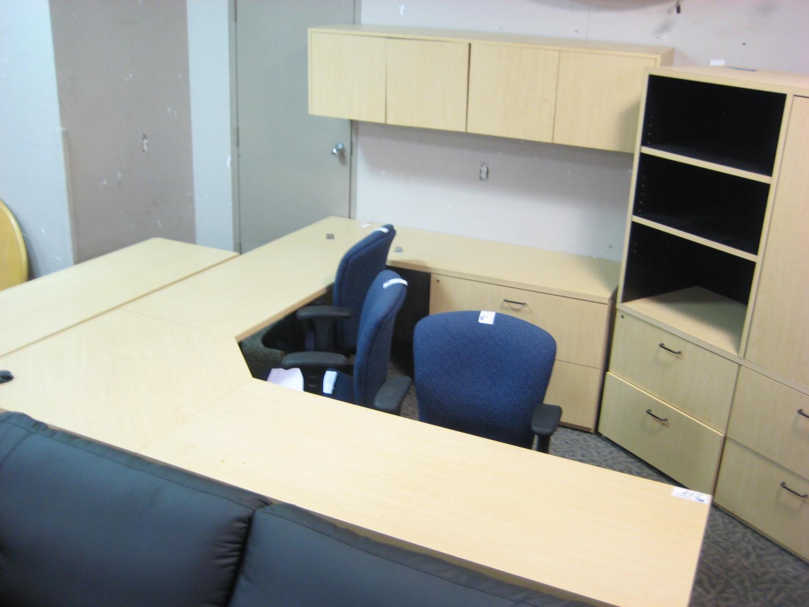 Maple U Shaped Executive Desk With Wall Mount Hutch