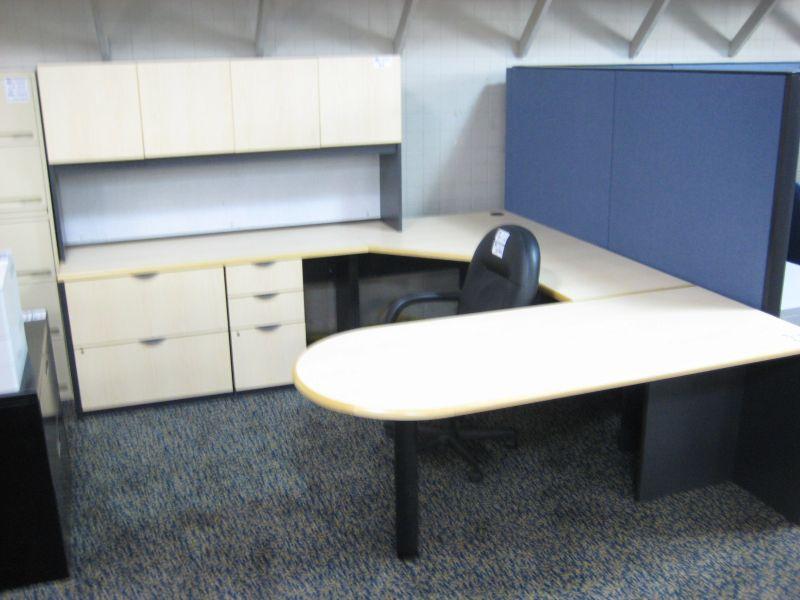 Maple U-Shaped Executive Desk C/w 2 Drawer Lateral And Hutch