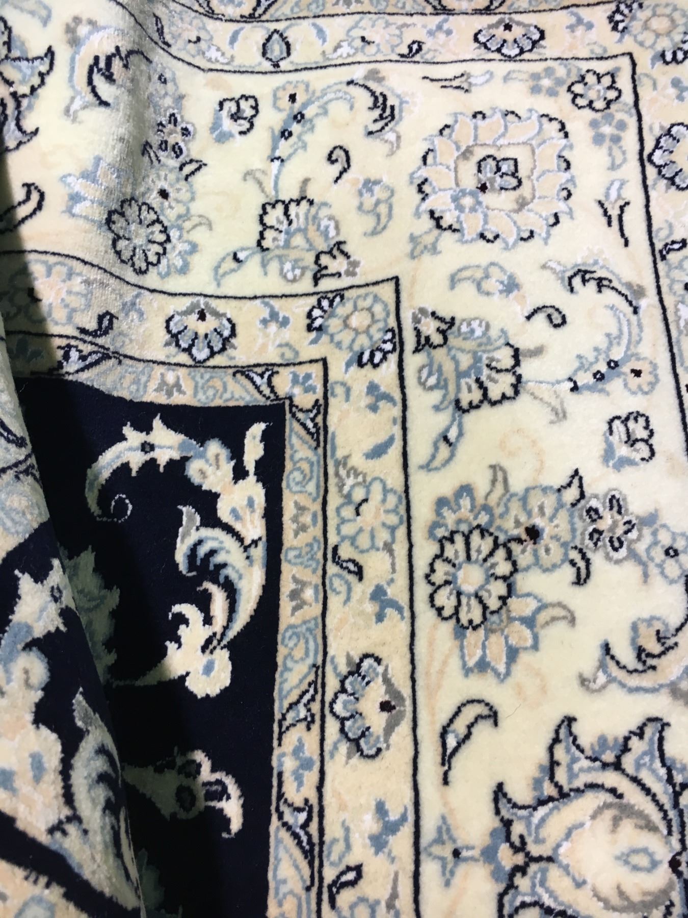 NAIN WOOL & SILK 8'9" X 5'9" CREAM, WHITE, ROYAL BLUE HAND WOVEN PERSIAN AREA RUG GALLERY PRICE $11,600