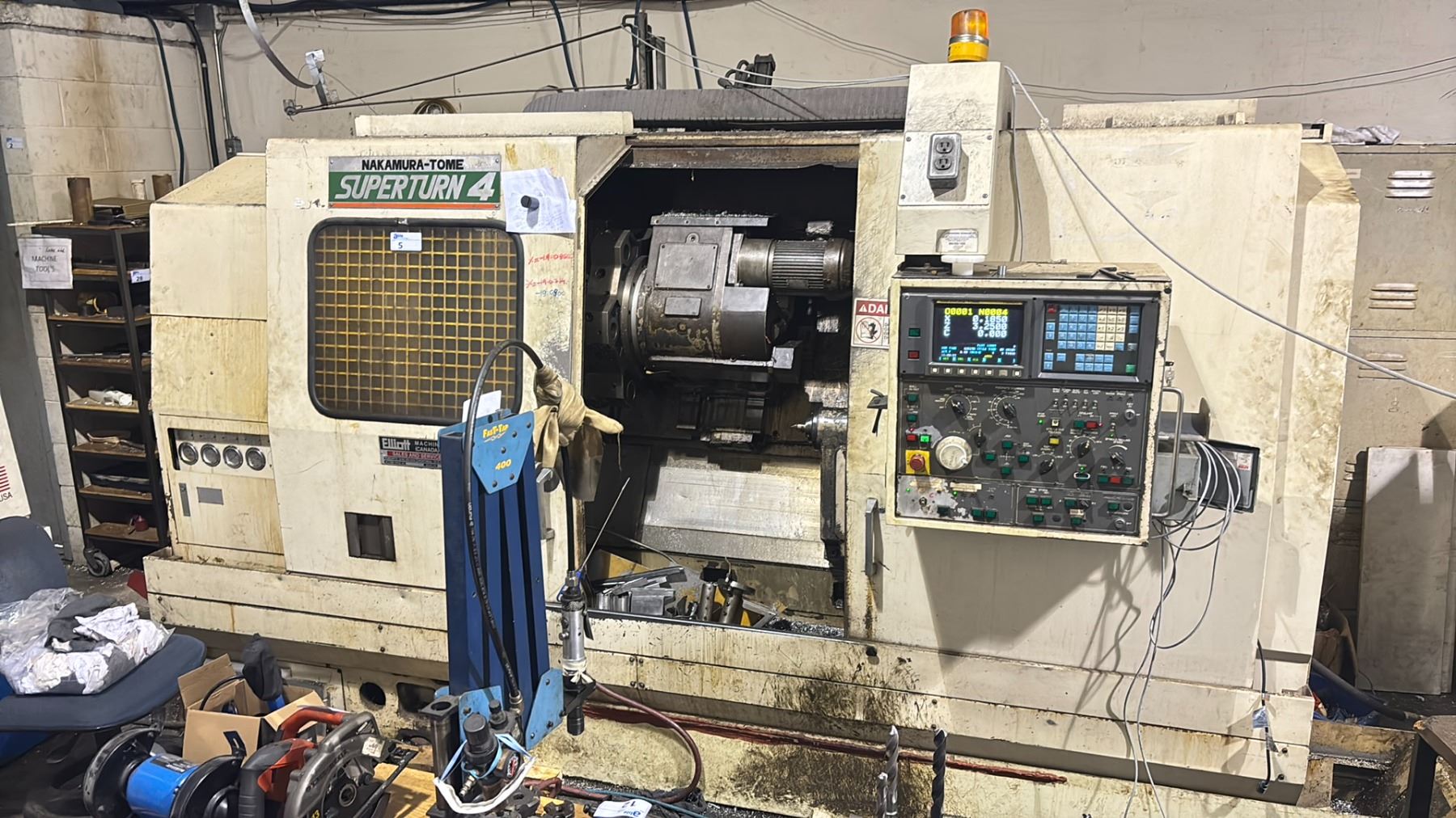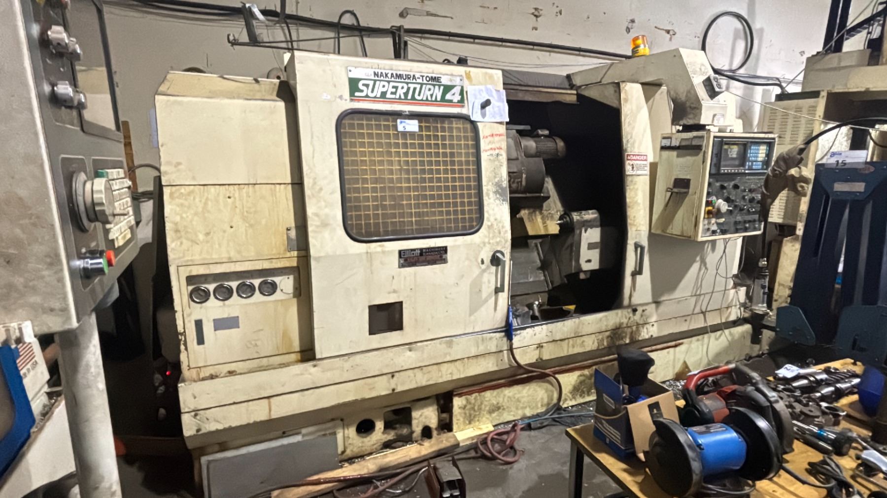 NAKAMURA-TOME SUPERTURN 4 CNC MACHINE WITH A NAKAMURA-TOME FANUC DIGITAL DISPLAY, MULTI AXIS CONTROL & ASSORTED PARTS/TOOLING *REQUIRES CRANE/HIAB/SKATES OR DOLLIES FOR REMOVAL*
