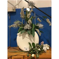 LARGE WHITE CERAMIC FLORAL VASE WITH ARTIFICIAL FLOWERS