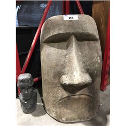 EASTER ISLAND STYLE CONCRETE MONOLITH HEAD STATUE - 2 1/2' TALL & SMALL CONCRETE STATUE