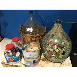 2 LARGE GLASS WINE BOTTLES AND ENORMOUS MATCHBOOK COLLECTION