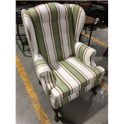 STRIPED PATTERN UPHOLSTERED WING BACK CHAIR43 - STRIPED PATTERN UPHOLSTERED WING BACK CHAIR