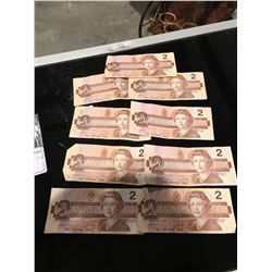 GROUP OF 9 CANADIAN $2 BILLS - 1986