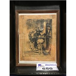 SMALL FRAMED SKETCH ON VELLUM SKIN - SIGNED BOTTOM LEFT CORNER, DATED 1646