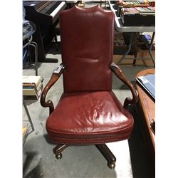 BURGANDY LEATHER MAHOGANY EXECUTIVE OFFICE CHAIR