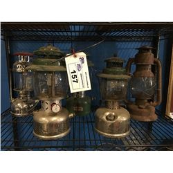 GROUP OF 5 VINTAGE LANTERNS - 2 COLEMANS & 3 OTHERS157 - GROUP OF 5 VINTAGE LANTERNS - 2 COLEMANS & 3 OTHERS