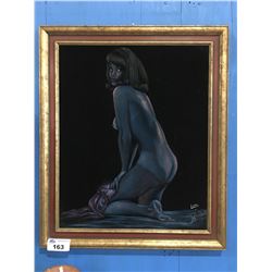 FRAMED "NUDE WOMAN" ON VELVET WALL HANGING - SIGNED BOTTOM RIGHT CORNER 32 1/2" X 39"163 - FRAMED "NUDE WOMAN" ON VELVET WALL HANGING - SIGNED BOTTOM RIGHT CORNER 32 1/2" X 39"