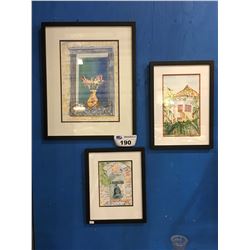 3 FRAMED ORIGINAL WATER COLOUR PAINTINGS BY LOCAL ARTIST GARLICK GRIFFIN