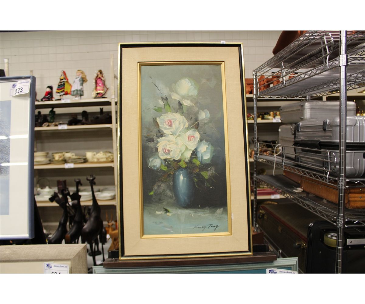 NANCY TANG, STILL LIFE, OIL ON CANVAS 11" W X 23 H ALL NET PROCEEDS FROM THE SALE OF THIS ARTWORK WILL BE DONATED TO THE SQUAMISH FOOD BANK