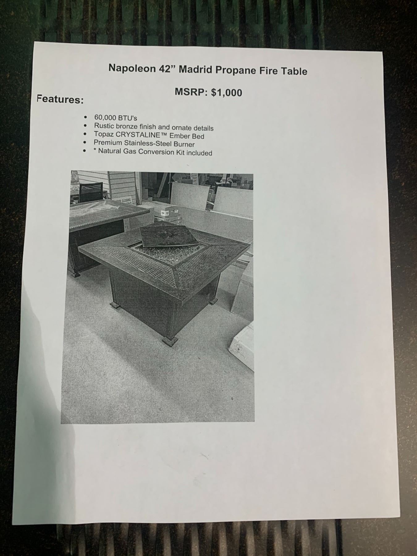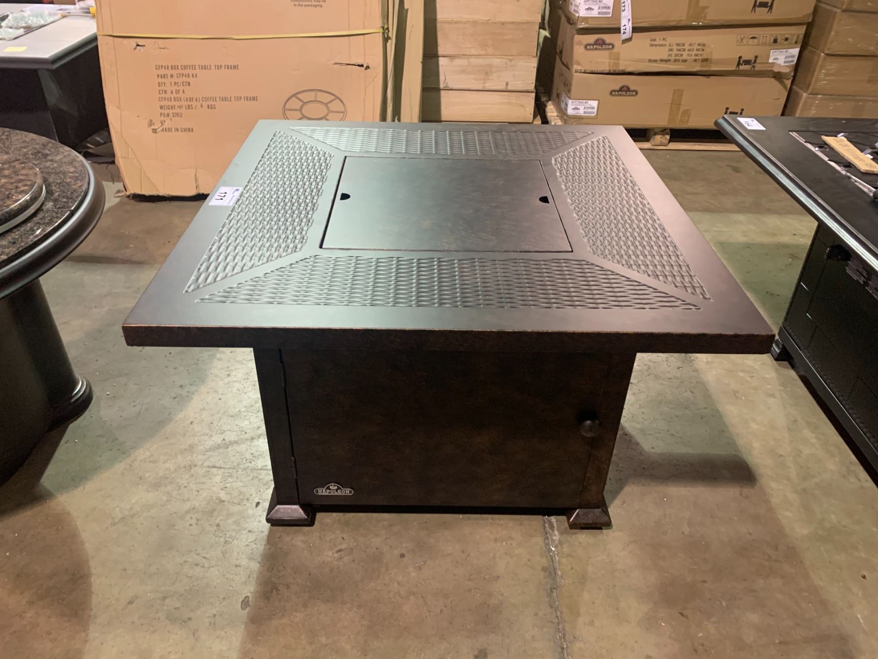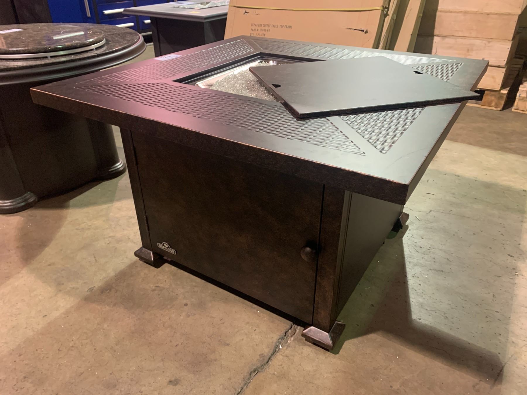 NAPOLEON MADRID SQUARE 42" CAST ALUMINUM PROPANE OUTDOOR FIRE TABLE DIMENSIONS: 42"D X 42"W X 25"H MSRP $1000