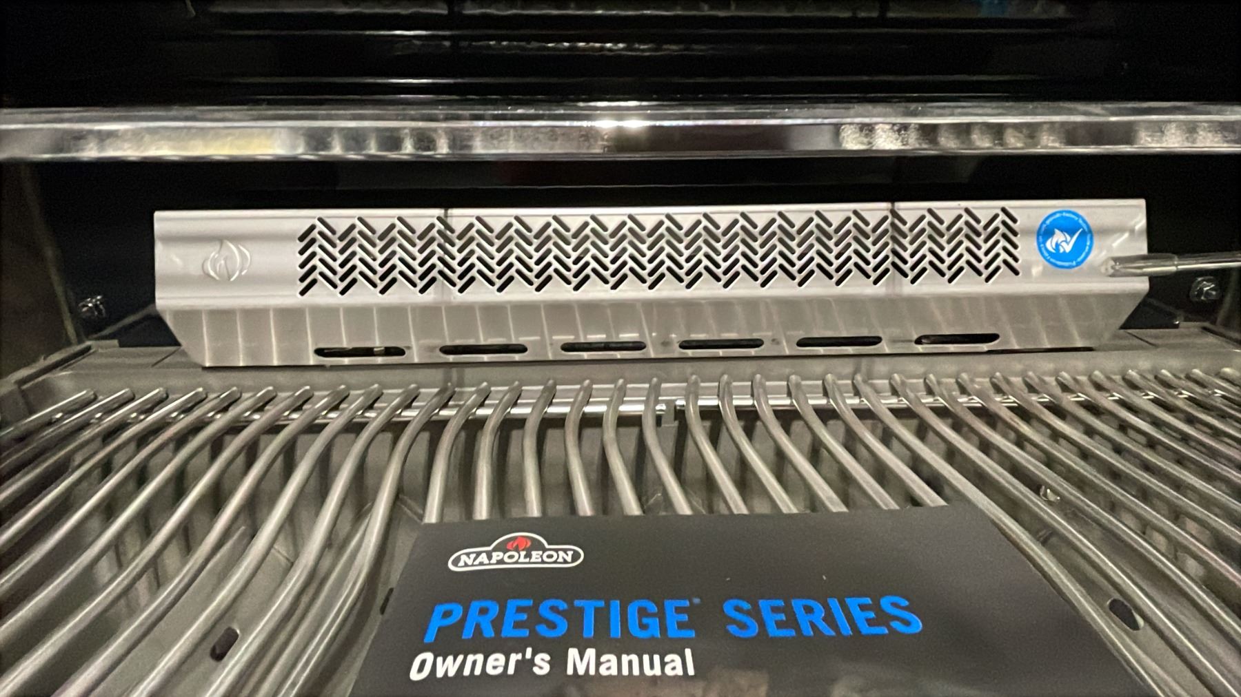 NAPOLEON PRESTIGE 500 MODEL P500RSIBNK-3-AMB. BLACK 4 BURNER PROPANE OUTDOOR GRILL WITH INFRARED & POWERED ROTISSERIE SN 500-468957 RETAIL PRICE $1,899.00