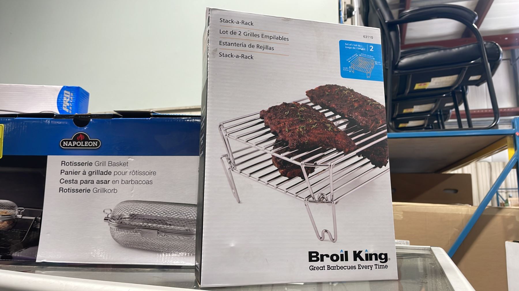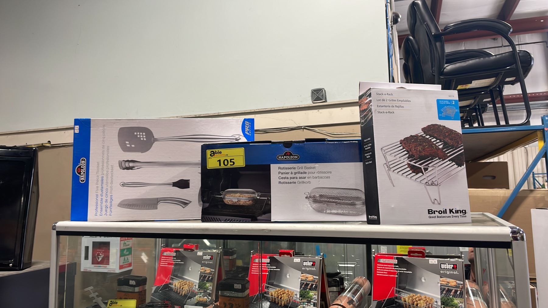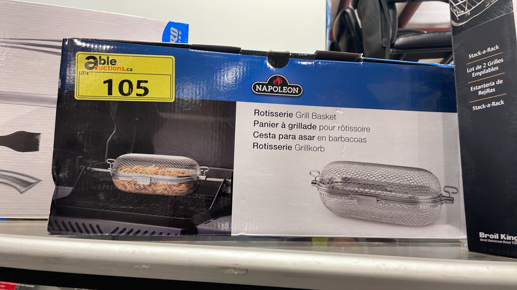 NAPOLEON ROTISSERIE GRILL BASKET, NAPOLEON PROFESSIONAL GRILL TOOL SET, & BROIL KING STACK RACKS