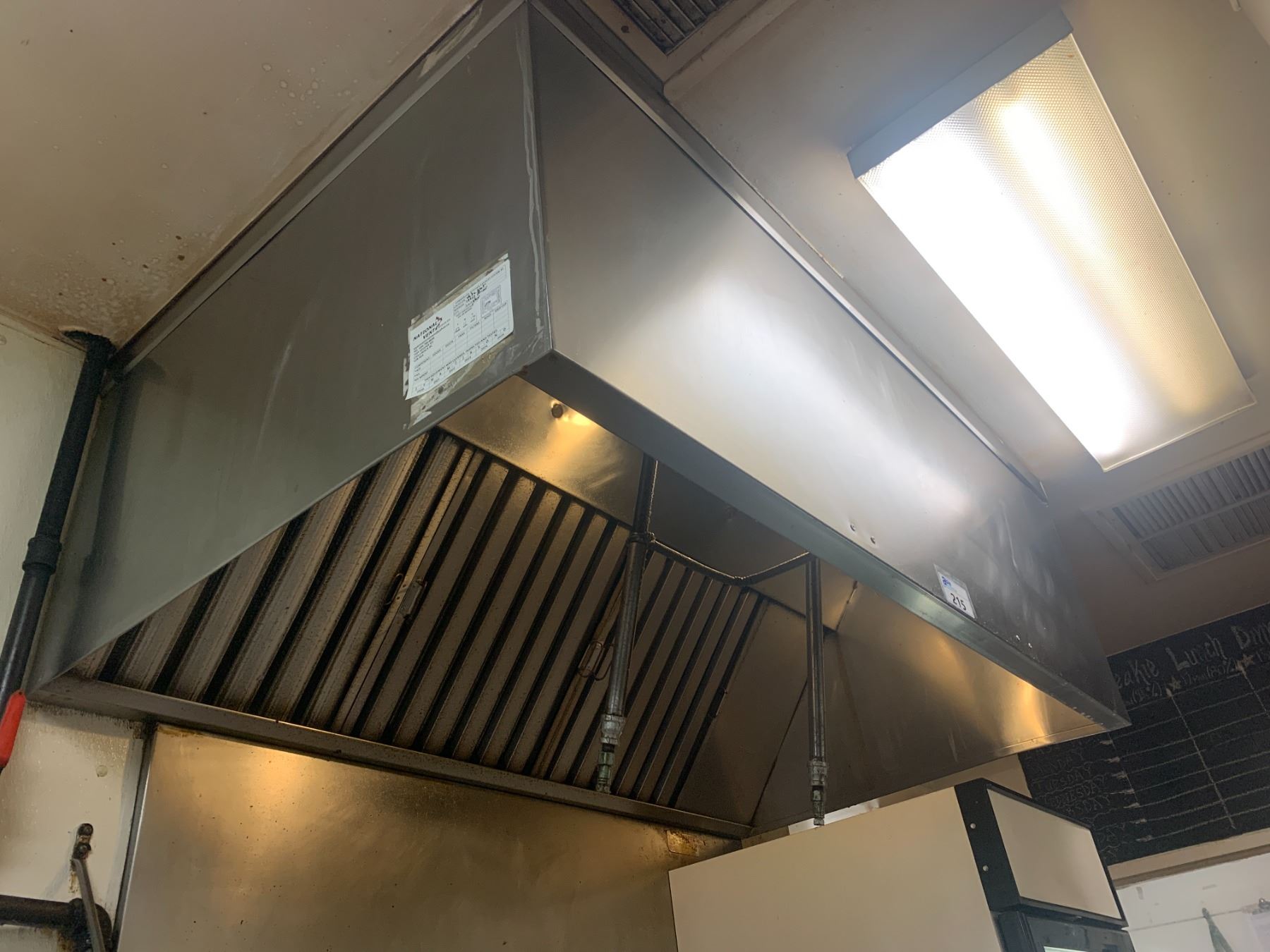NATIONAL VENT 2 HEAD STAINLESS STEEL COMMERCIAL FIRE SUPPRESSION SYSTEM APPROX. 4'W *FIRE SUPPRESSION HAS BEEN DISCONNECTED*