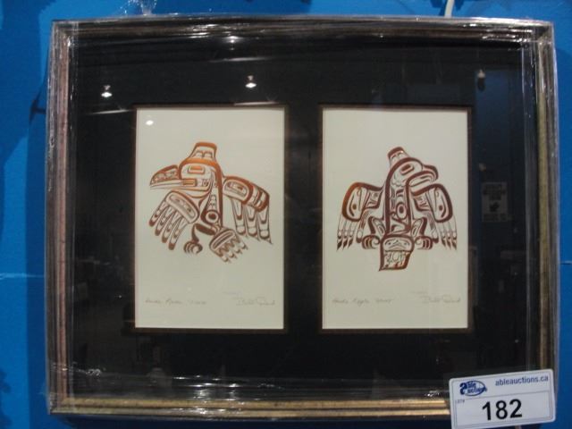 NATIVE PRINT BY BILL REID - HAIDA RAVEN AND HAIDA EAGLE
