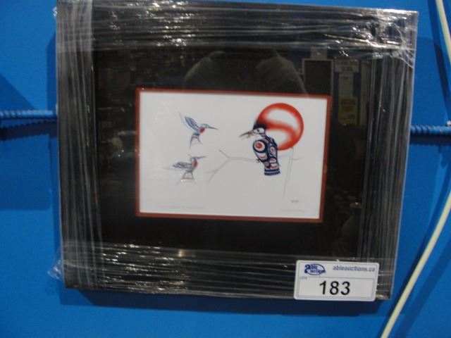 NATIVE PRINT BY RICHARD SHORTY - HUMMINGBIRD AND KINGFISHER