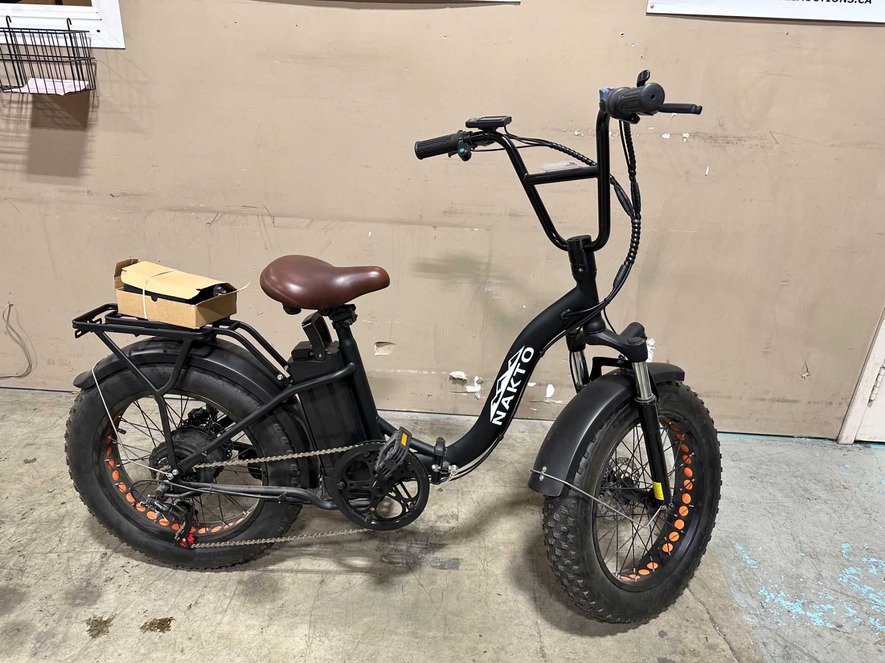 NATKO STEADY EBIKE, 500 WATT, 48 VOLT, 12 AMP HOUR LITHIUM ION BATTERY, DISC BRAKES, FOLDING, 5 POWER ASSIST LEVELS, 20" FAT TIRES. NEW, WORKS.