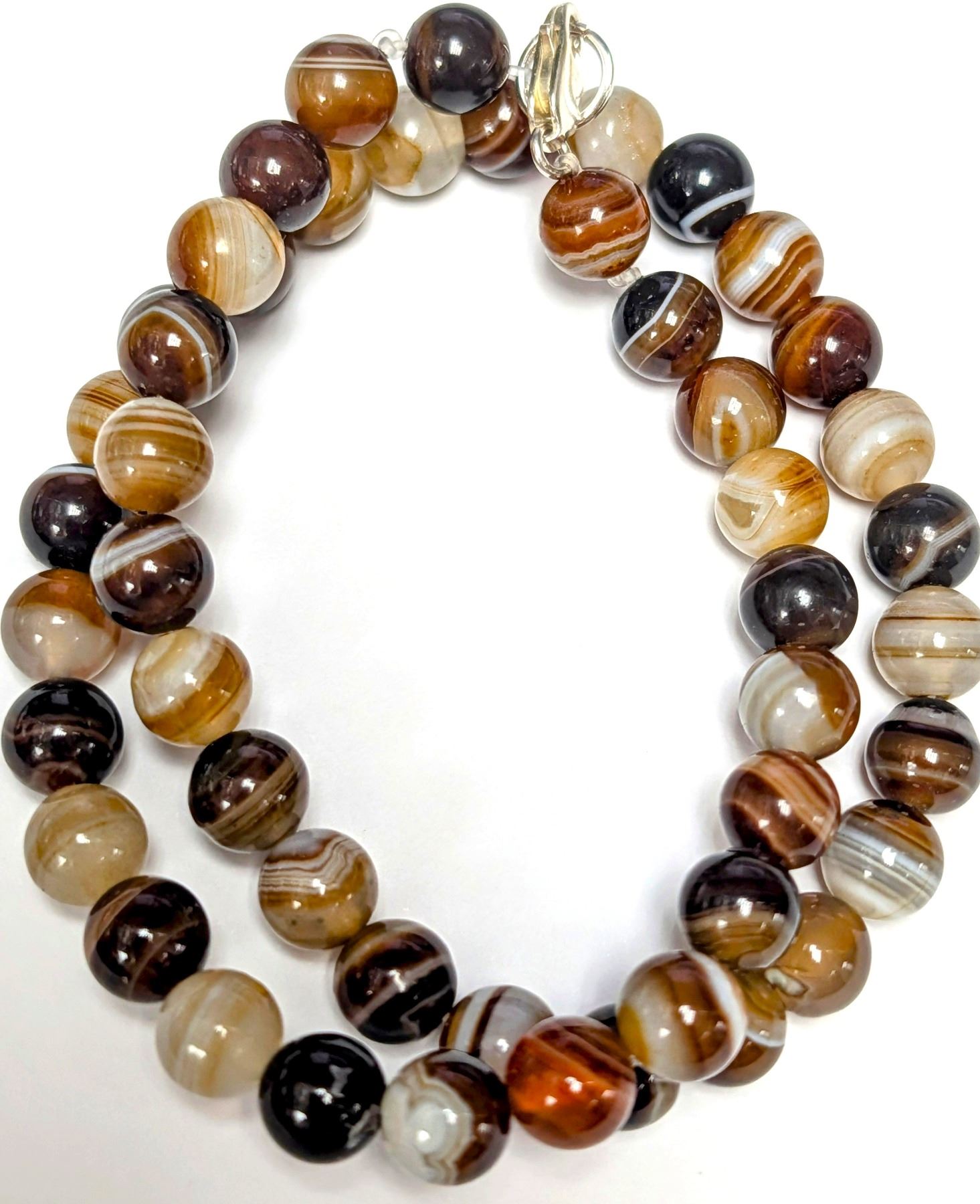 NATURAL AGATE BEAD NECKLACE 16" WITH SILVER CLASP, SUGGESTED RETAIL VALUE $240