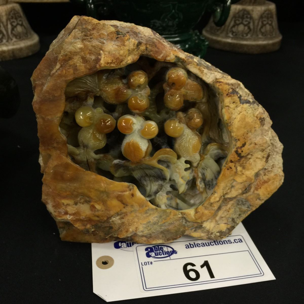 NATURAL AGATE CARVING OF KOI, 8'' L X 7'' H