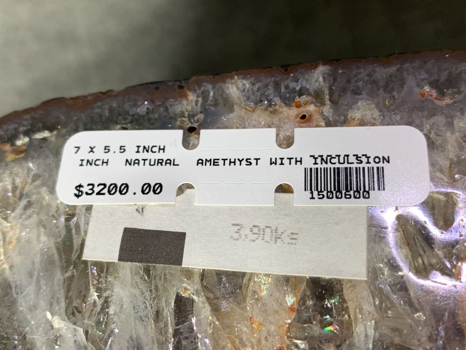 NATURAL AMETHYST WITH INCLUSION APPROX 7X 5.5" RETAIL $3200