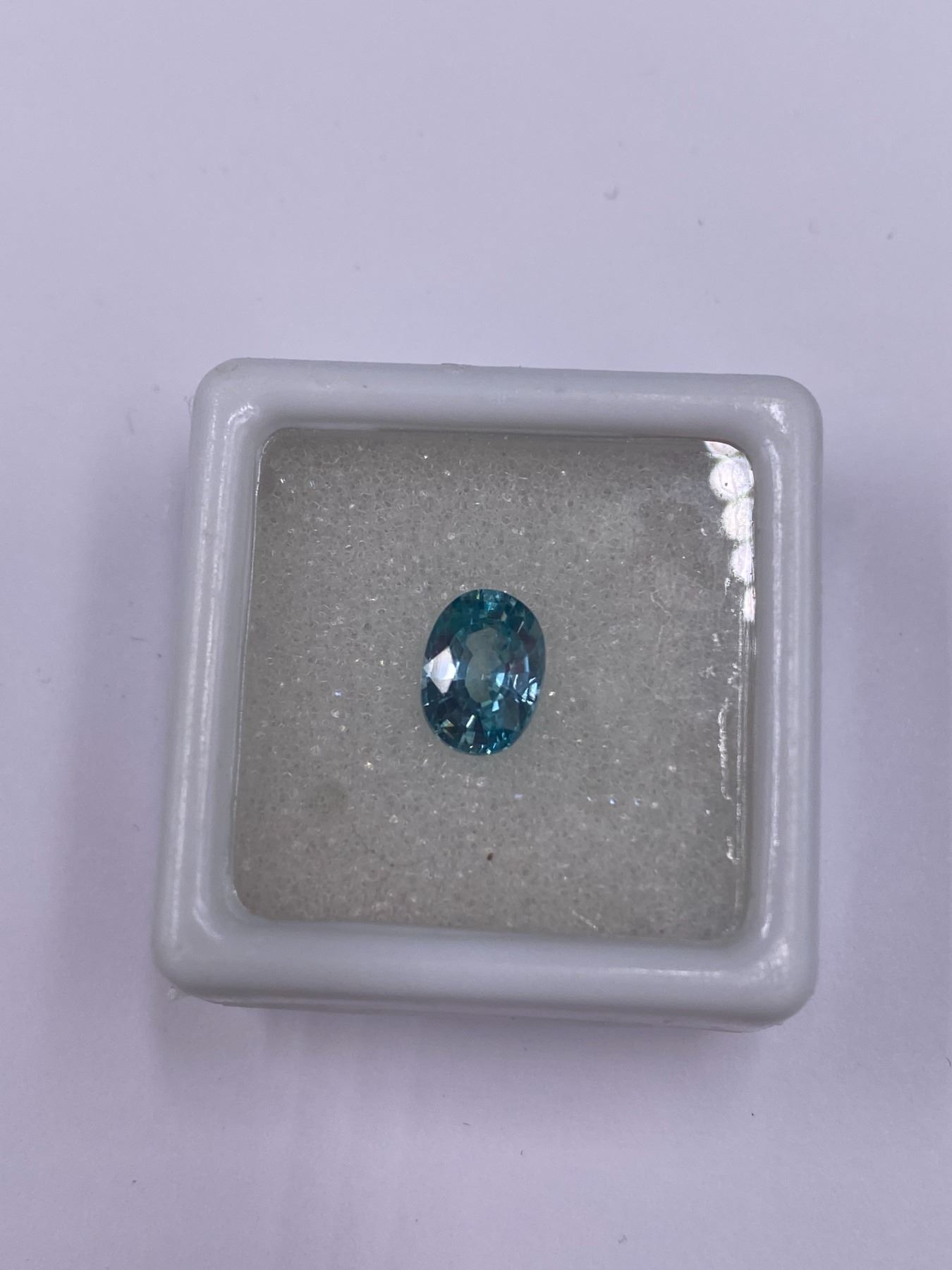 NATURAL BLUE ZIRCON 1.89 CT (8 X 5.9 X 4 MM) OVAL CUT, VVS QUALITY, CAMBODIA/UNTREATED