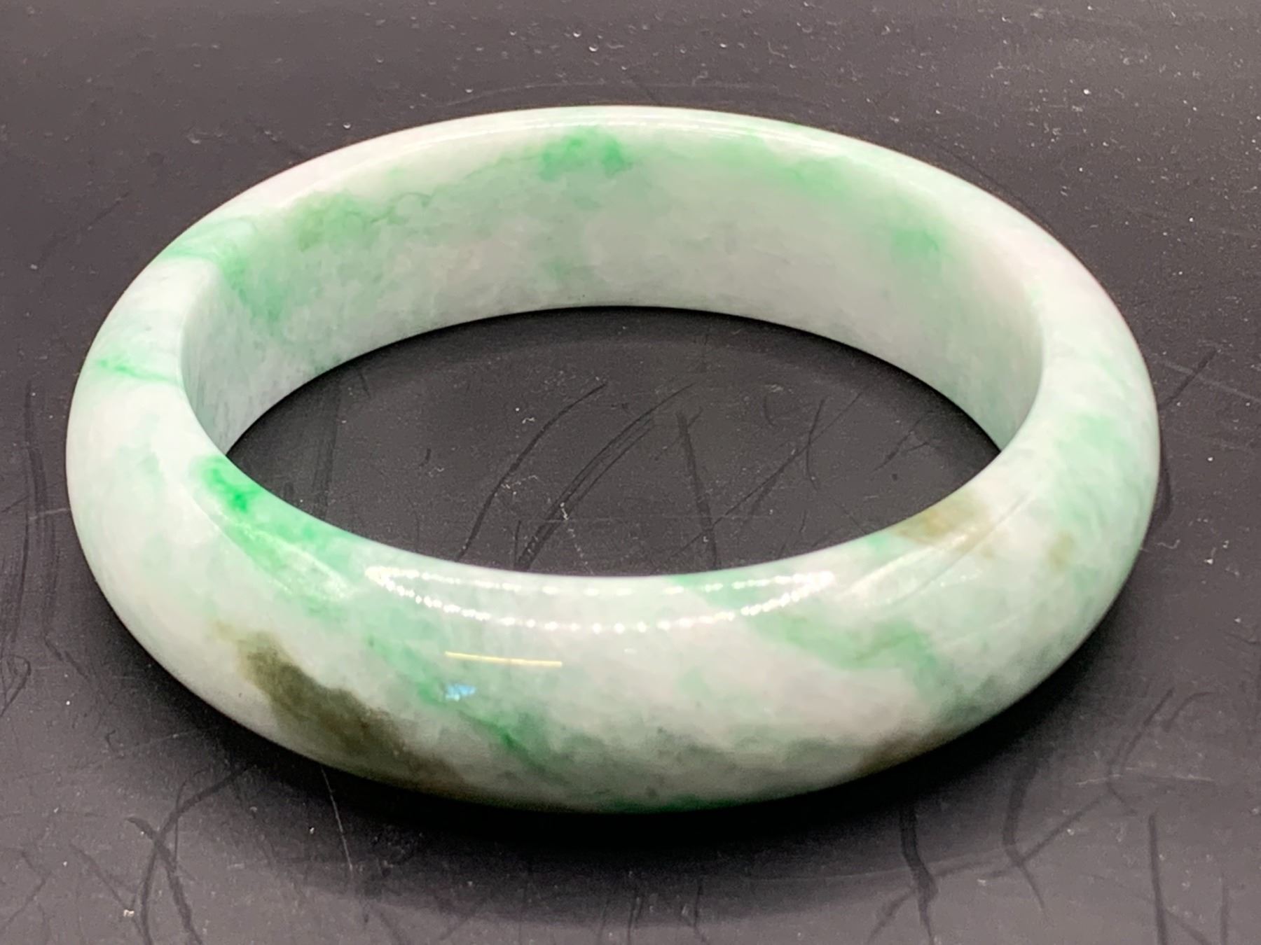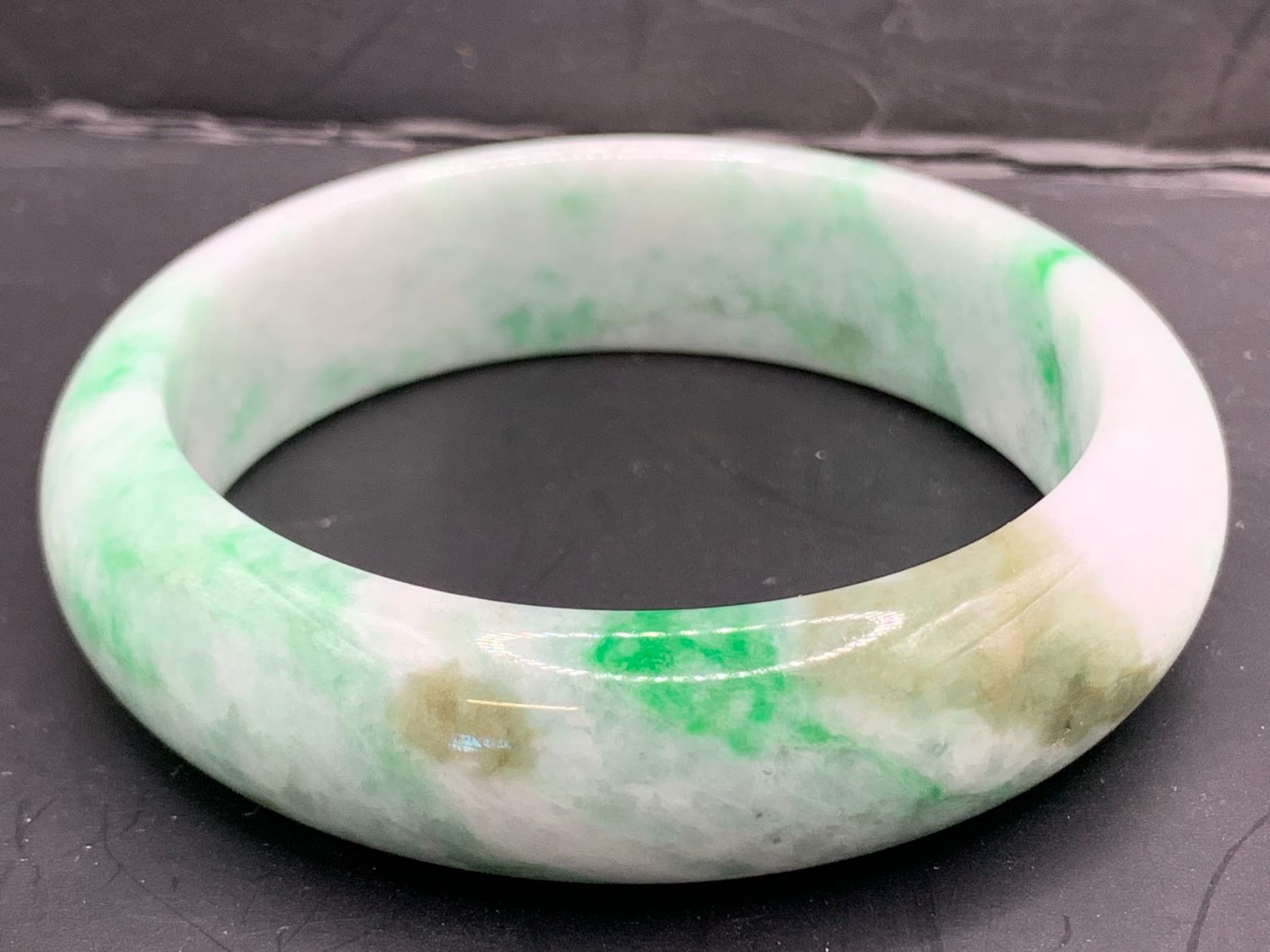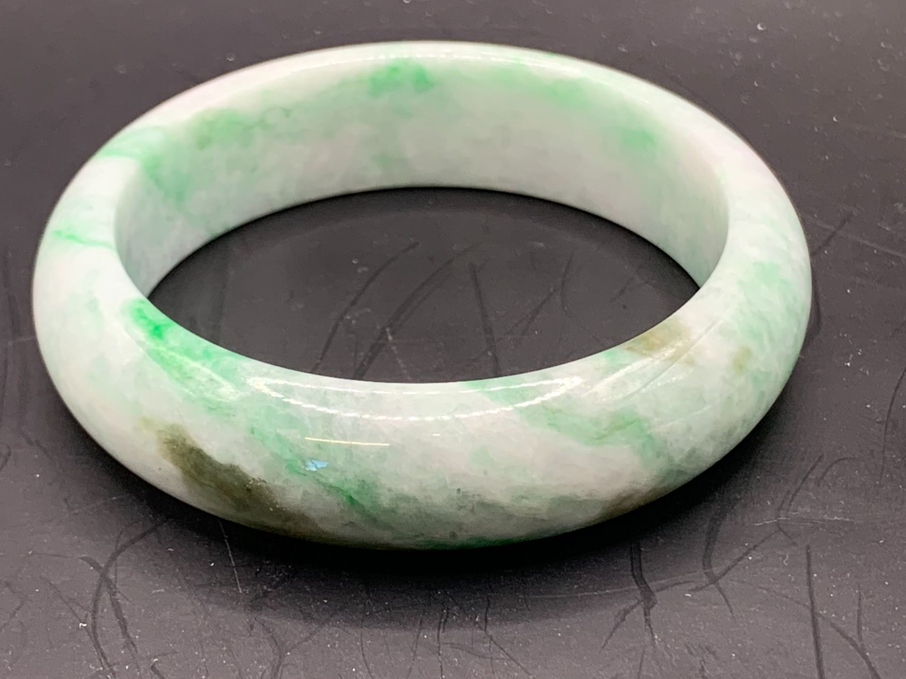 NATURAL BURMESE JADEITE BANGLE STYLE BRACELET. 16.50MM CLARITY: GOOD, TRANSPARENCY: OPAQUE 71.10GRAMS WITH APPRAISAL REPLACEMENT VALUE: $ 875.- (EIGHT HUNDRED AND SEVENTY FIVE)