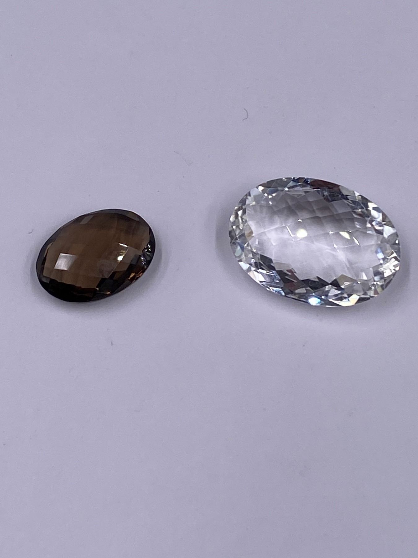 NATURAL CLEAR & SMOKEY QUARTZ 30.00CT, OVAL CUT, VVS, BRAZIL, UNTREATED