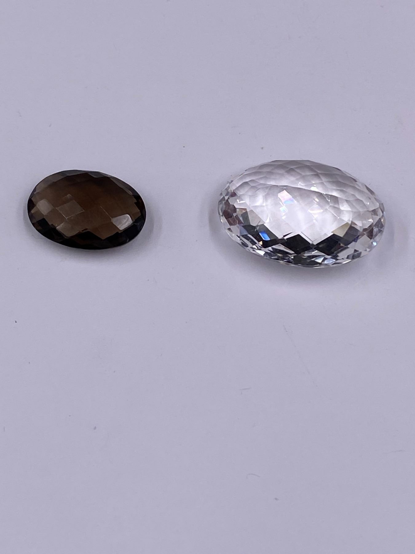 NATURAL CLEAR & SMOKEY QUARTZ 36.67CT, OVAL CUT, VVS, BRAZIL, UNTREATED