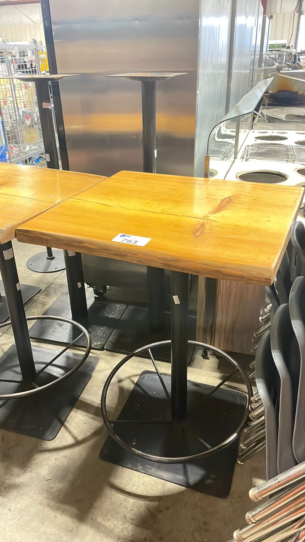 NATURAL LIVE EDGE 30 W X 26 D X 42 H WOODEN TOP BLACK METAL BASE BAR HEIGHT RESTAURANT TABLE