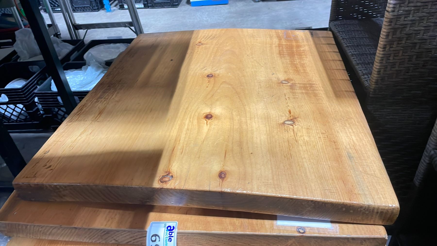 NATURAL LIVE EDGE 31"W X 28"D X 30"H WOODEN TOP BLACK METAL BASE RESTAURANT TABLE