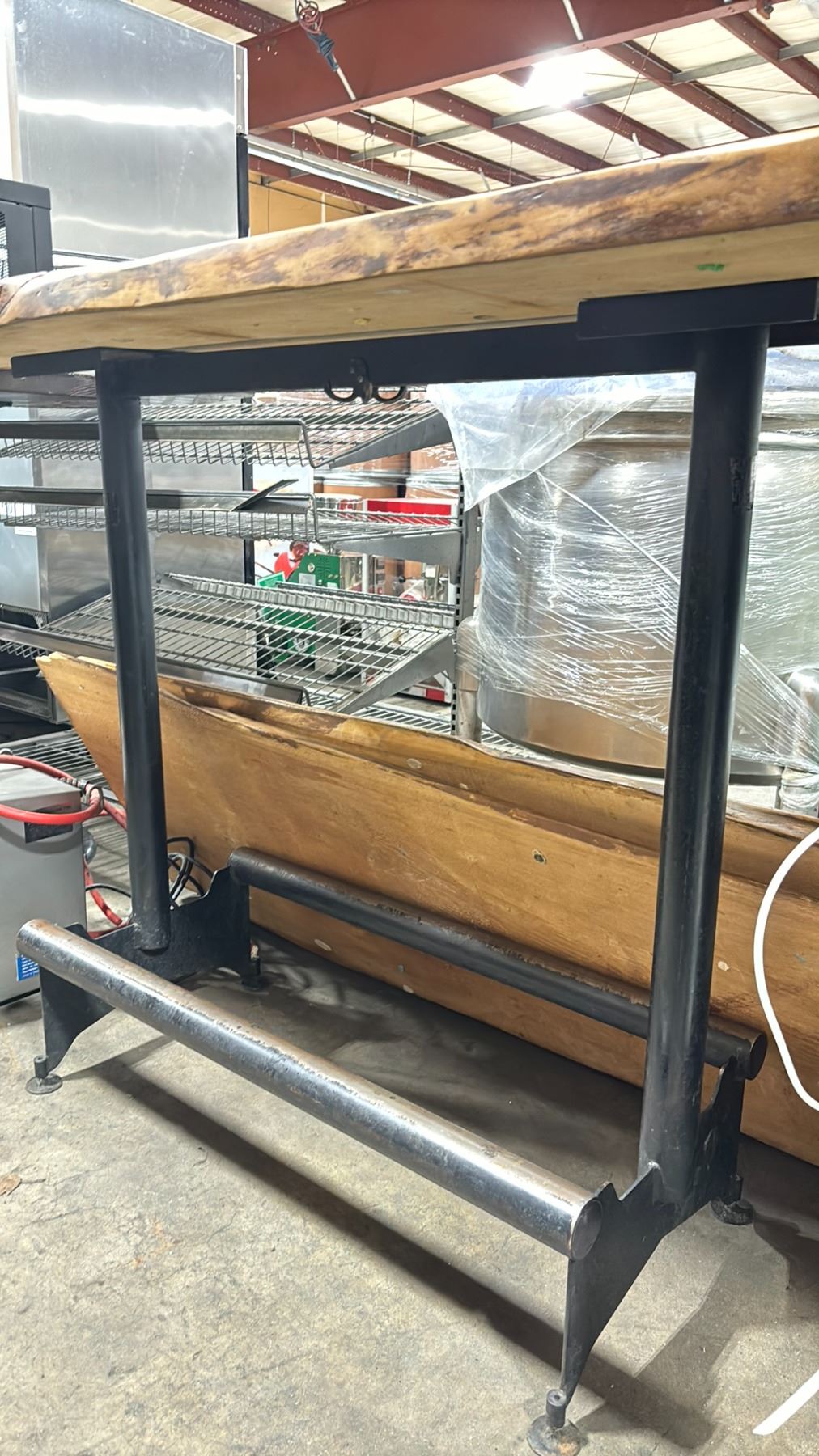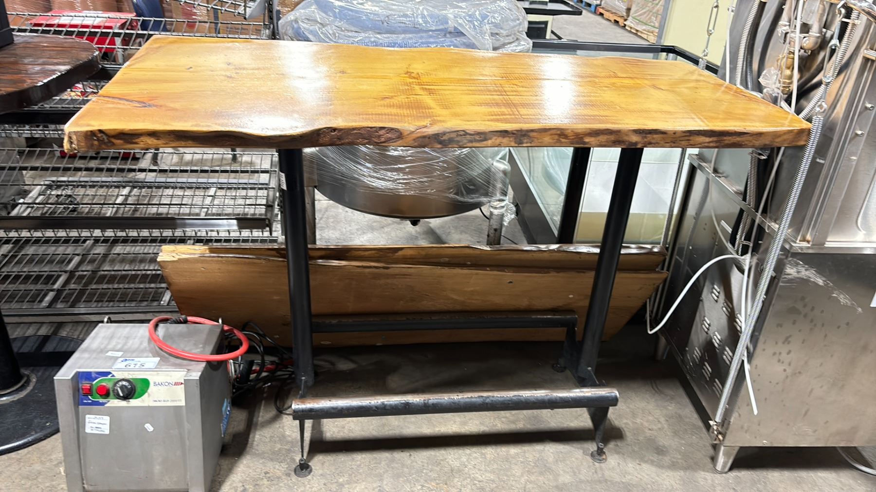 NATURAL LIVE EDGE 62"W X 28"D X 44"H WOODEN TOP BLACK METAL BASE BAR HEIGHT RESTAURANT TABLE