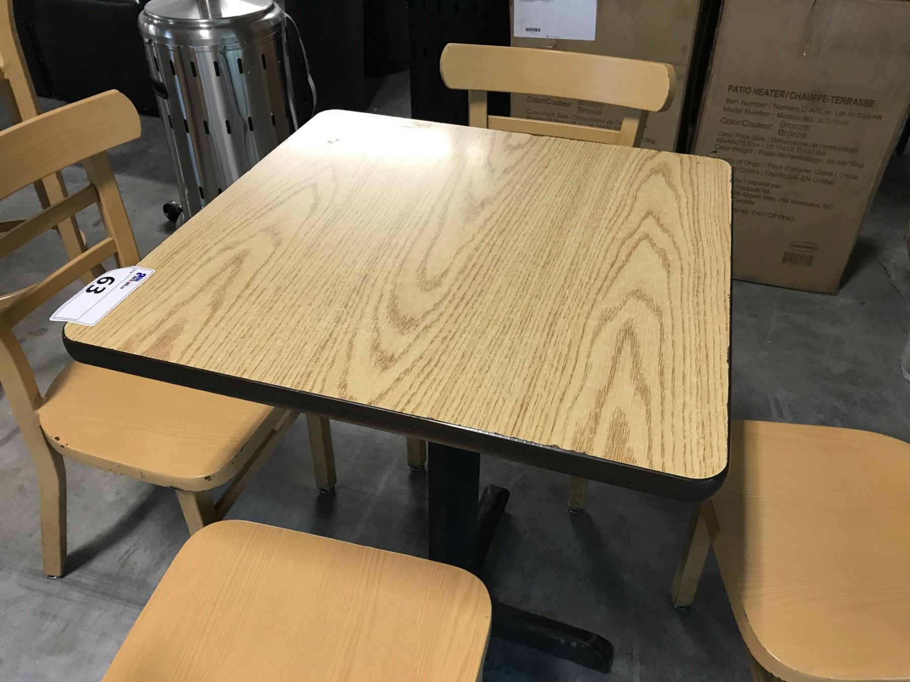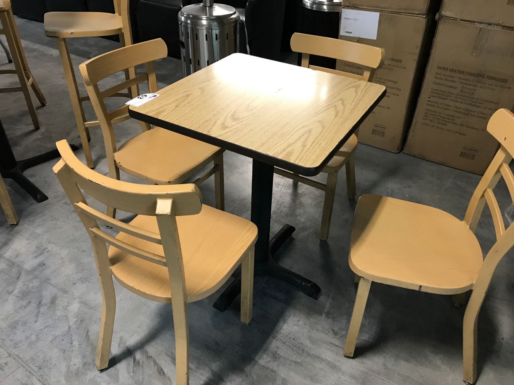 NATURAL OAK 2' X 2' BISTRO TABLE WITH 4 LIGHT WOOD GRAIN BISTRO METAL CHAIRS